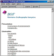 BOF ne fait aucunement allusion à la qualité du logiciel dont il est question, c est tout simplement l abréviation de "Bréviaire d Orthographe Française". Ce logiciel n en est pas un puisque c est un simple fichier d aide Windows qui recense une cinquantaine de règles de grammaire comme l utilisation des traits d union, les pronoms et les adjectifs, les groupes des verbes, les accords des participe passés.