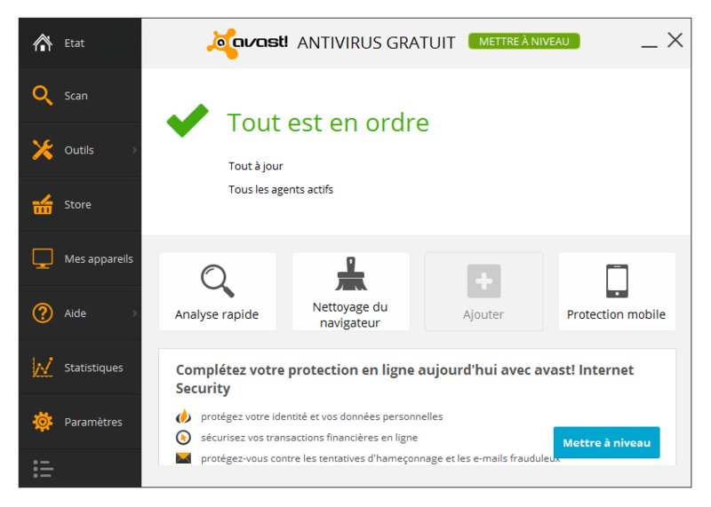 Le plus populaire des Antivirus propose désormais un gestionnaire de mots de passe permettant de gérer les nombreux couples identifiants/mots de passe à partir d’une seule et unique interface. Le stockage local de ses données est chiffré, et une option permet de les sauvegarder sur les serveurs d’Avast.Autre grosse nouveauté d’Avast Antivirus Gratuit est l’apparition d’un navigateur Web protégé, nommé SafeZone Browser. Basé sur le navigateur Opera, lui-même utilisant le moteur de Chromium, il protège l’utilisateur lors de sa navigation en particulier lors des paiements en ligne ou la consultation des comptes bancaires. Le navigateur d’Avast Antivirus Gratuit propose aussi d’exécuter les sites potentiellement malveillants dans un environnement virtuel afin de bloquer toute tentative d’attaque.Totalement compatible avec les dernières versions de Windows, en particulier Windows 10, Avast Antivirus Gratuit reprend et améliore les grandes fonctionnalités introduites dans les précédentes versions. Le module de sécurité du réseau domestique est maintenant capable de reconnaitre automatiquement les nouveaux appareils connectés et d’avertir l’utilisateur. Toujours présents, le système unifié de mise à jour des applications et des extensions, le module SecureLine (VPN) disponible en version d’essai, ainsi qu’un module protégeant tous les navigateurs des changements (barres de d’outils ou moteur de recherche par défaut) non souhaités. Parmi les autres points abordés dans la mise à jour d’Avast Antivirus Gratuit, on peut noter l'amélioration des performances du moteur d'analyse antivirus et anti spyware et les micro mises à jour de la base virale par jour, assurant une protection optimale.